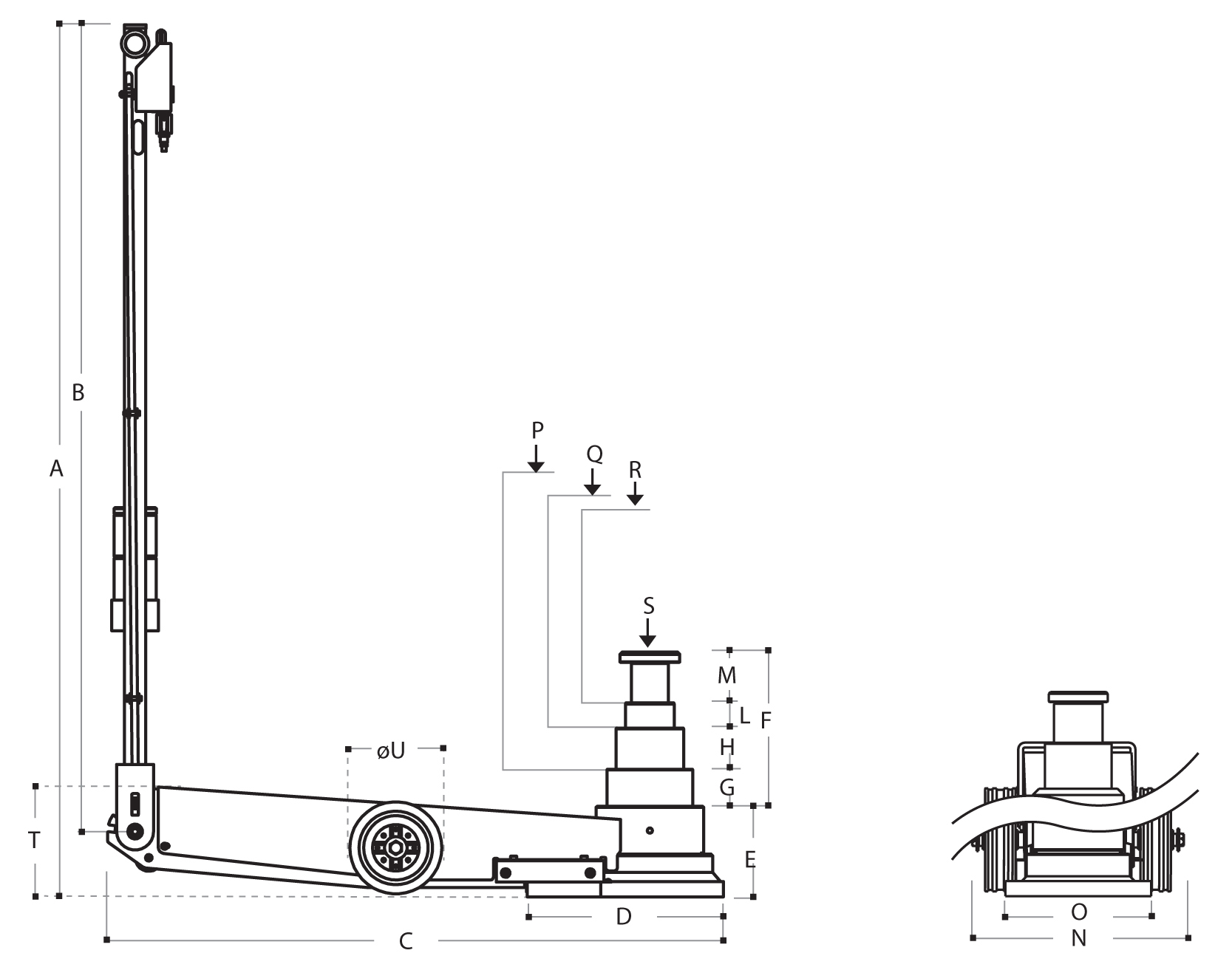 Air hydraulic jacks designed for heavy vehicles. Practical, reliable and easy to use. Air powered ascent